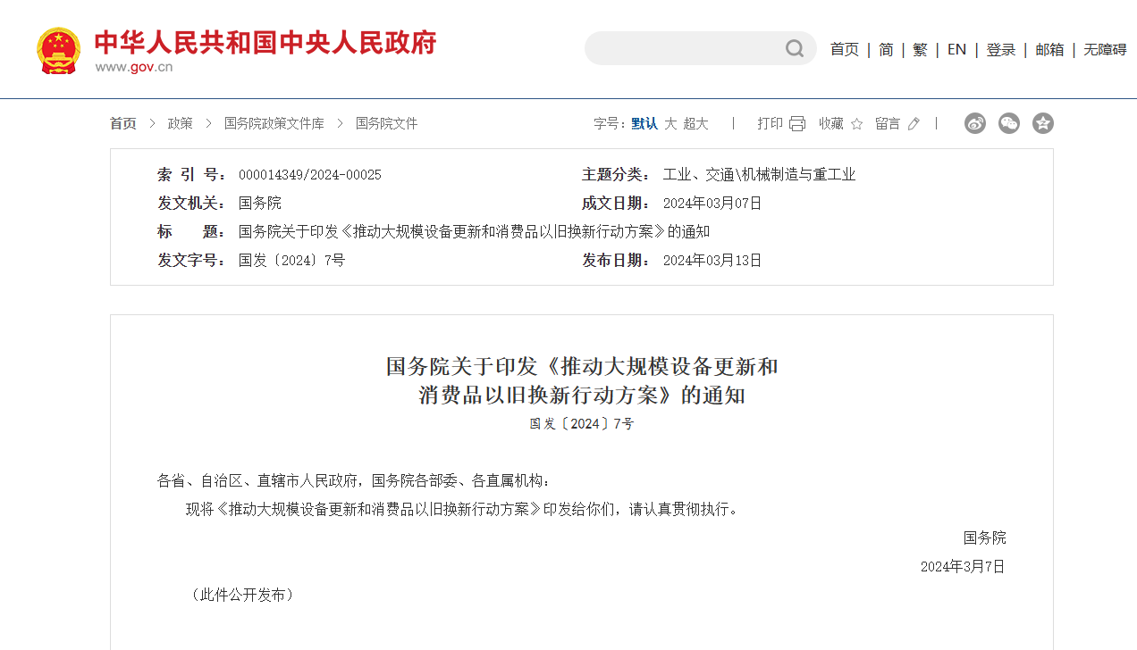 國務(wù)院印發(fā)的《推動(dòng)大規(guī)模設(shè)備更新和消費(fèi)品以舊換新行動(dòng)方案》明確鼓勵(lì)空調(diào)等設(shè)備節(jié)能改造,為行業(yè)帶來政策紅利。