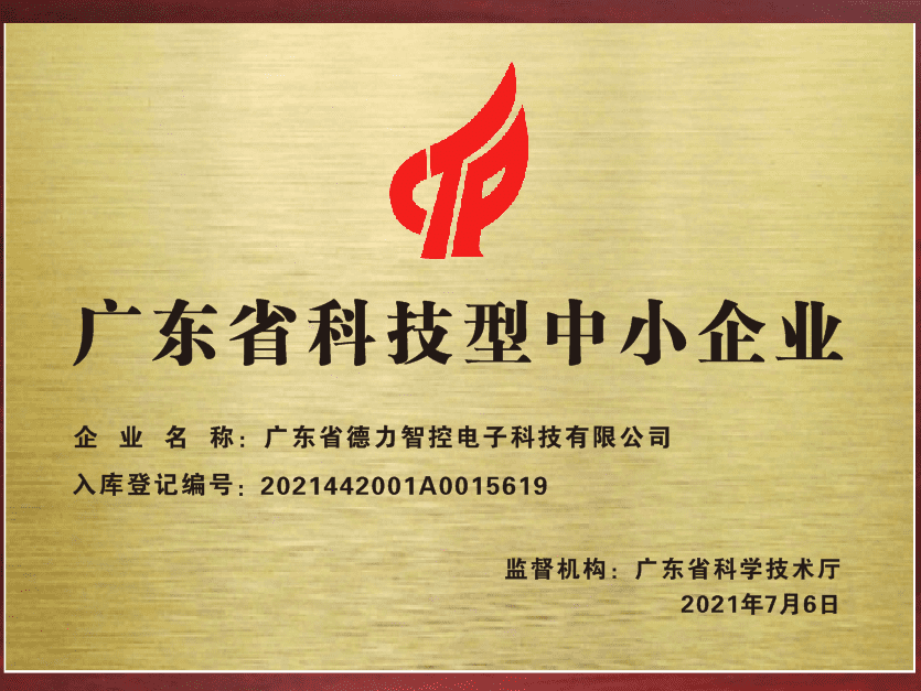 德力智控榮獲《廣東省科技型中小企業(yè)》~