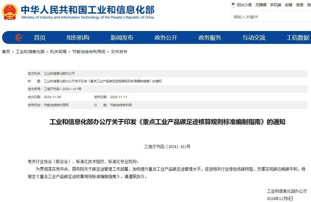 11月11日,工信部發布了“碳足跡”新通知,印發實施《重點工業產品碳足跡核算規則標準編制指南》(以下簡稱:編制指南)。