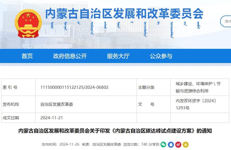 就以內蒙古自治區為例,11月21日,當地發改委印發了《內蒙古自治區碳達峰試點建設方案》(以下簡稱:建設方案)。