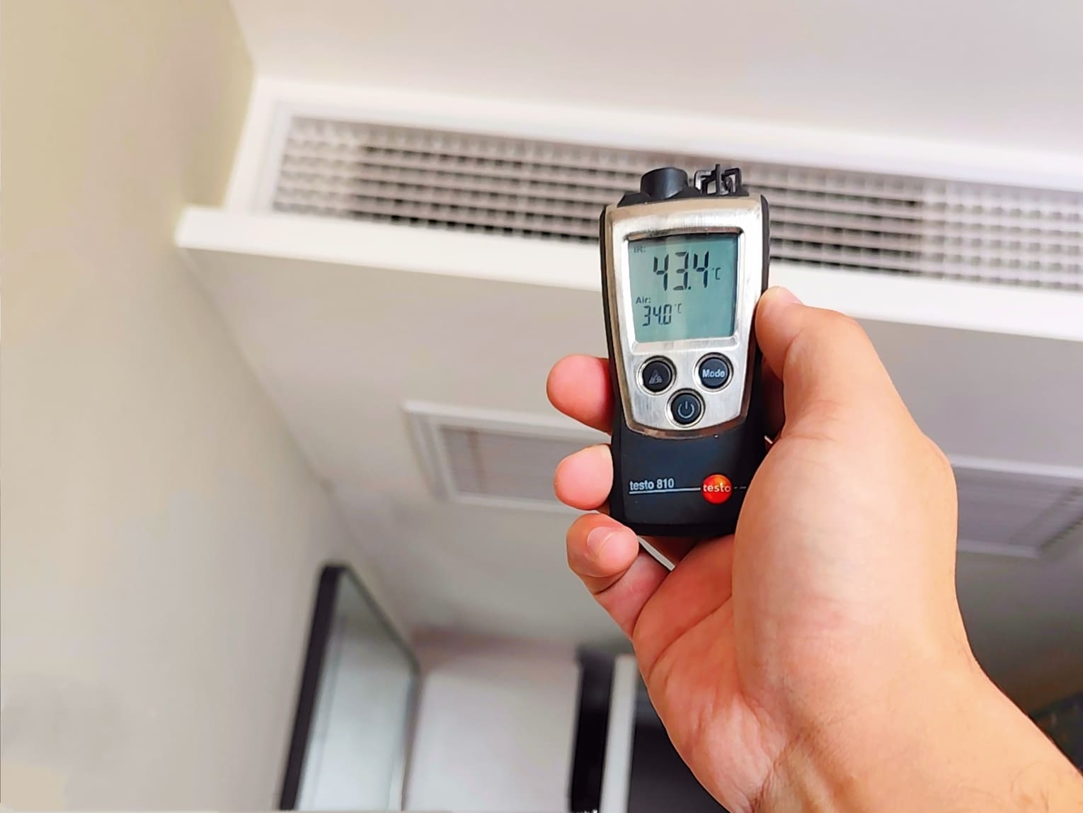 打樣時,室外環境溫度在7℃-15℃之間,改造前與改造后的出風口溫度依舊穩定在43℃左右,沒有影響丹陽市如家商旅酒店的正常取暖需求。