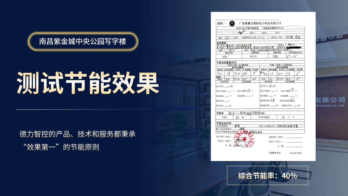 就以寫(xiě)字樓為例,在去年10月-11月期間,德力智控為南昌市紫金城中央公園的寫(xiě)字樓節(jié)能改造實(shí)地打樣,制冷和制熱狀態(tài)下,空調(diào)系統(tǒng)測(cè)算的綜合節(jié)能率40%!
