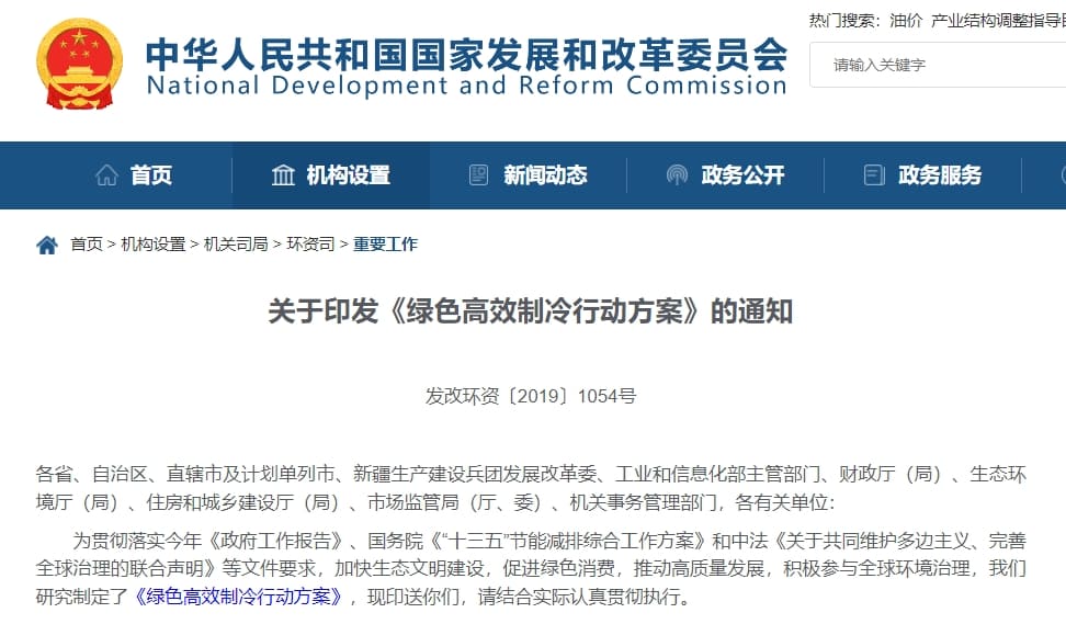 2019年,國家發改委、工信部等七部門聯手印發了《綠色高效制冷行動方案》,方案中指出,到 2030 年,大型公共建筑制冷能效提升30%,制冷總體能效水平提升 25%以上,綠色高效制冷產品市場占有率提高 40%以上,實現年節電 4000 億千瓦時左右。
