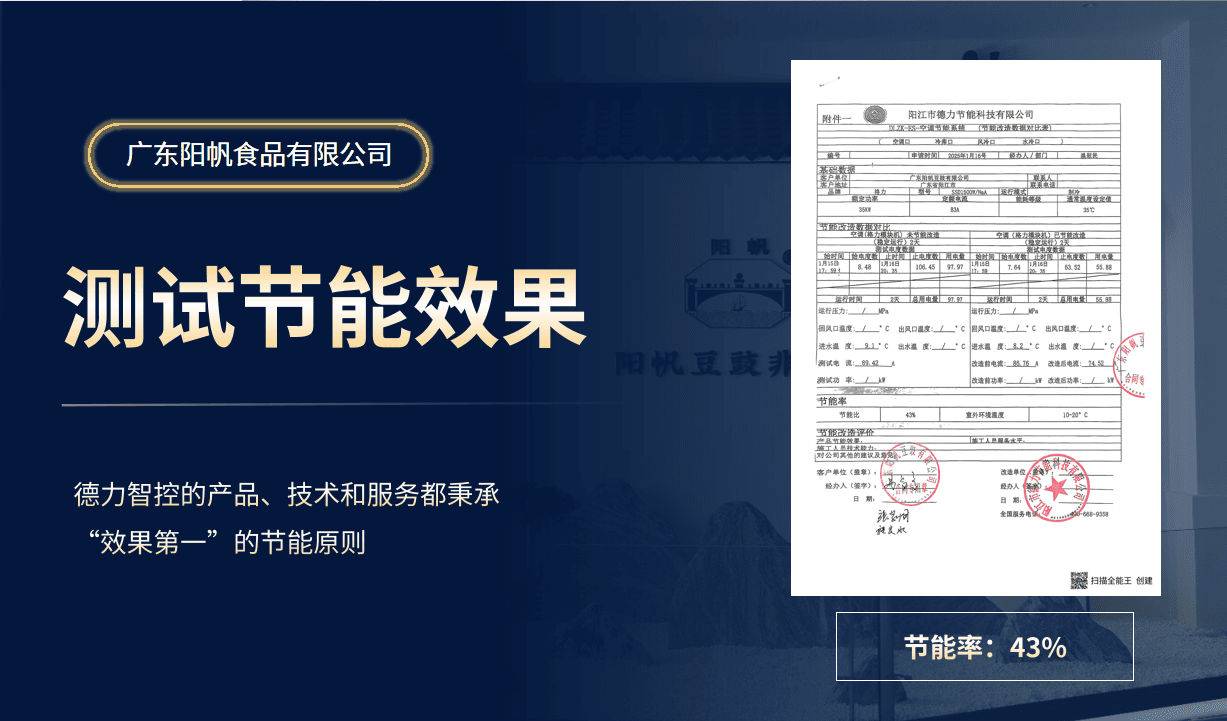 整個施工過程高效、專業,節能率穩定,得到了陽帆食品在場人員的高度認可。同時,在全程在場看到實際打樣效果后,陽帆食品也選擇了與德力智控正式合作,這也為企業的綠色轉型,邁出了非常關鍵的一步。