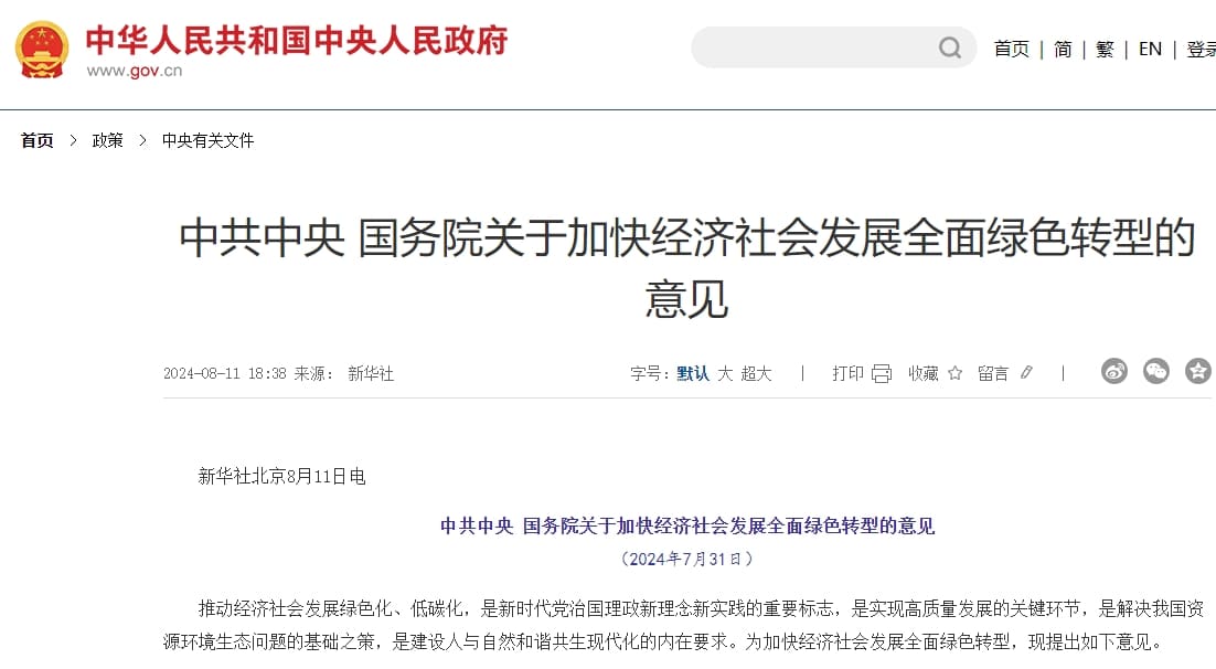 前不久,國(guó)務(wù)院印發(fā)了《關(guān)于加快經(jīng)濟(jì)社會(huì)發(fā)展全面綠色轉(zhuǎn)型的意見(jiàn)》(以下簡(jiǎn)稱(chēng)《意見(jiàn)》)。這是中央層面首次對(duì)加快經(jīng)濟(jì)社會(huì)發(fā)展全面綠色轉(zhuǎn)型進(jìn)行系統(tǒng)部署。