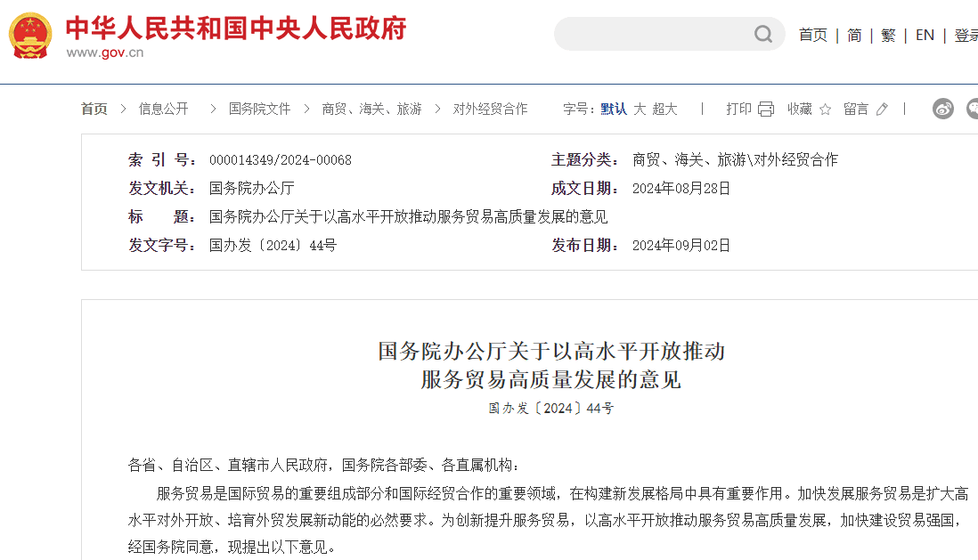 9月2日,國務(wù)院辦公廳發(fā)布了《關(guān)于以高水平開放推動服務(wù)貿(mào)易高質(zhì)量發(fā)展的意見》。(以下簡稱:意見)