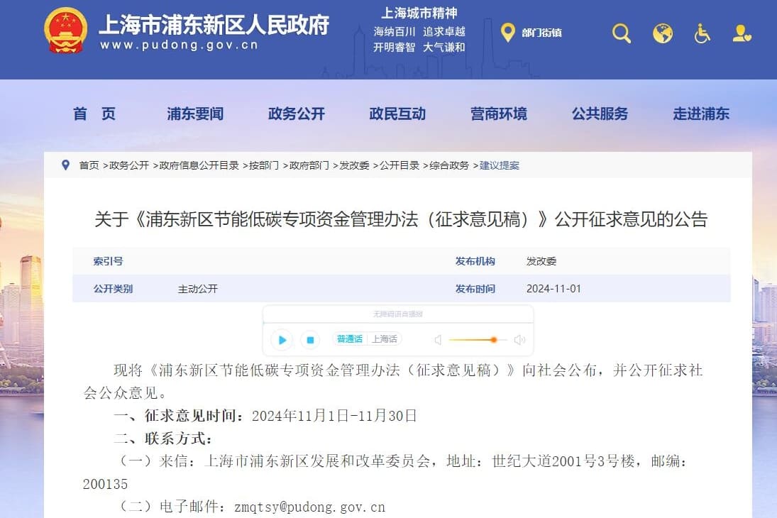 11月1日,上海市浦東新區(qū)發(fā)改委征求《浦東新區(qū)節(jié)能低碳專項資金管理辦法(征求意見稿)》意見。